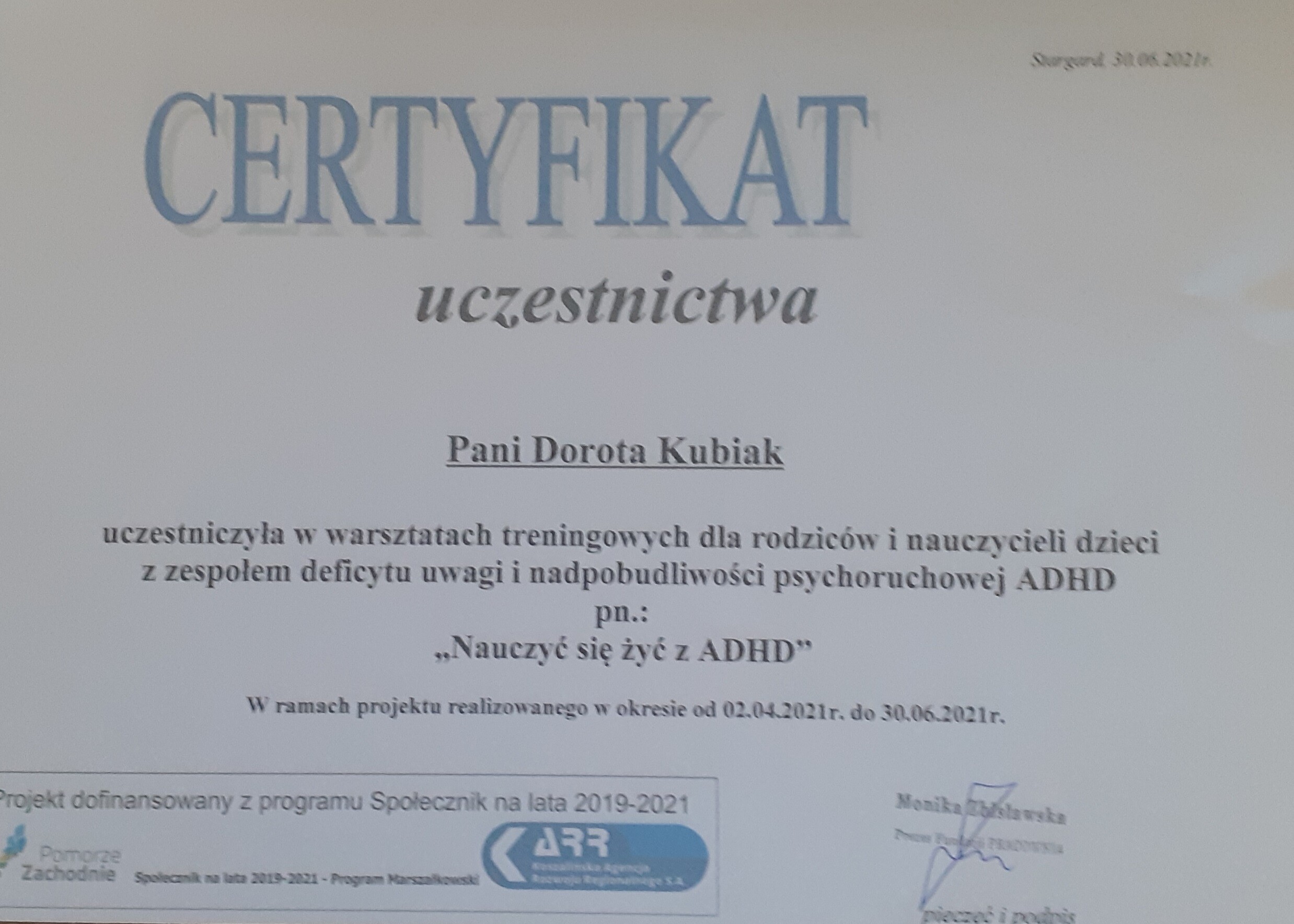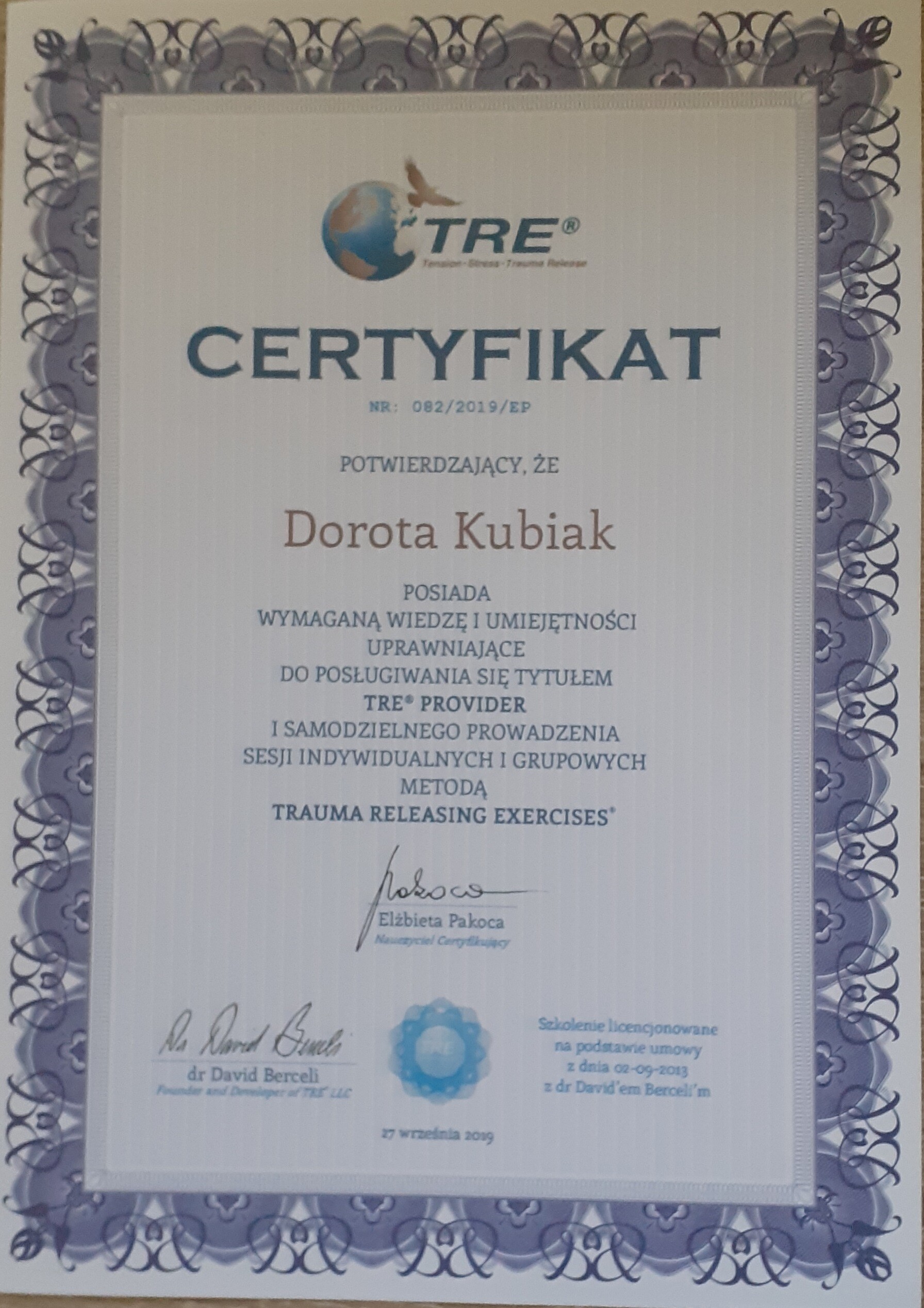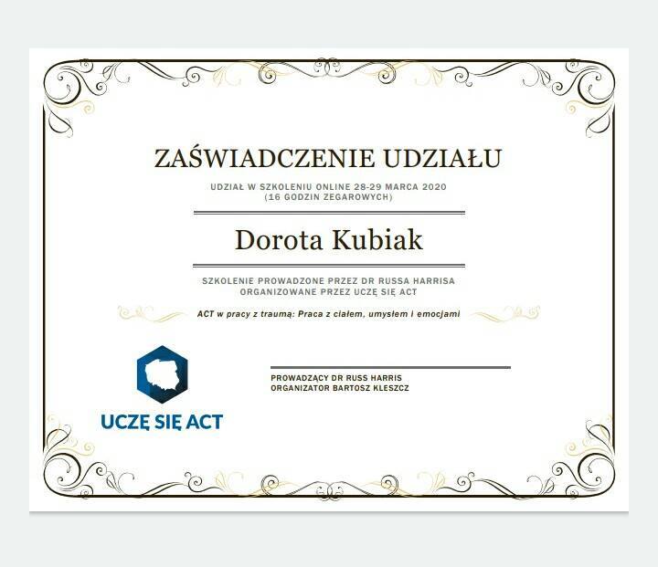 Starsze certyfikaty wystawione były na nazwisko małżeńskie: Dorota Kubiak. Obecnie na nazwisko rodowe: Dorota Dybowska.