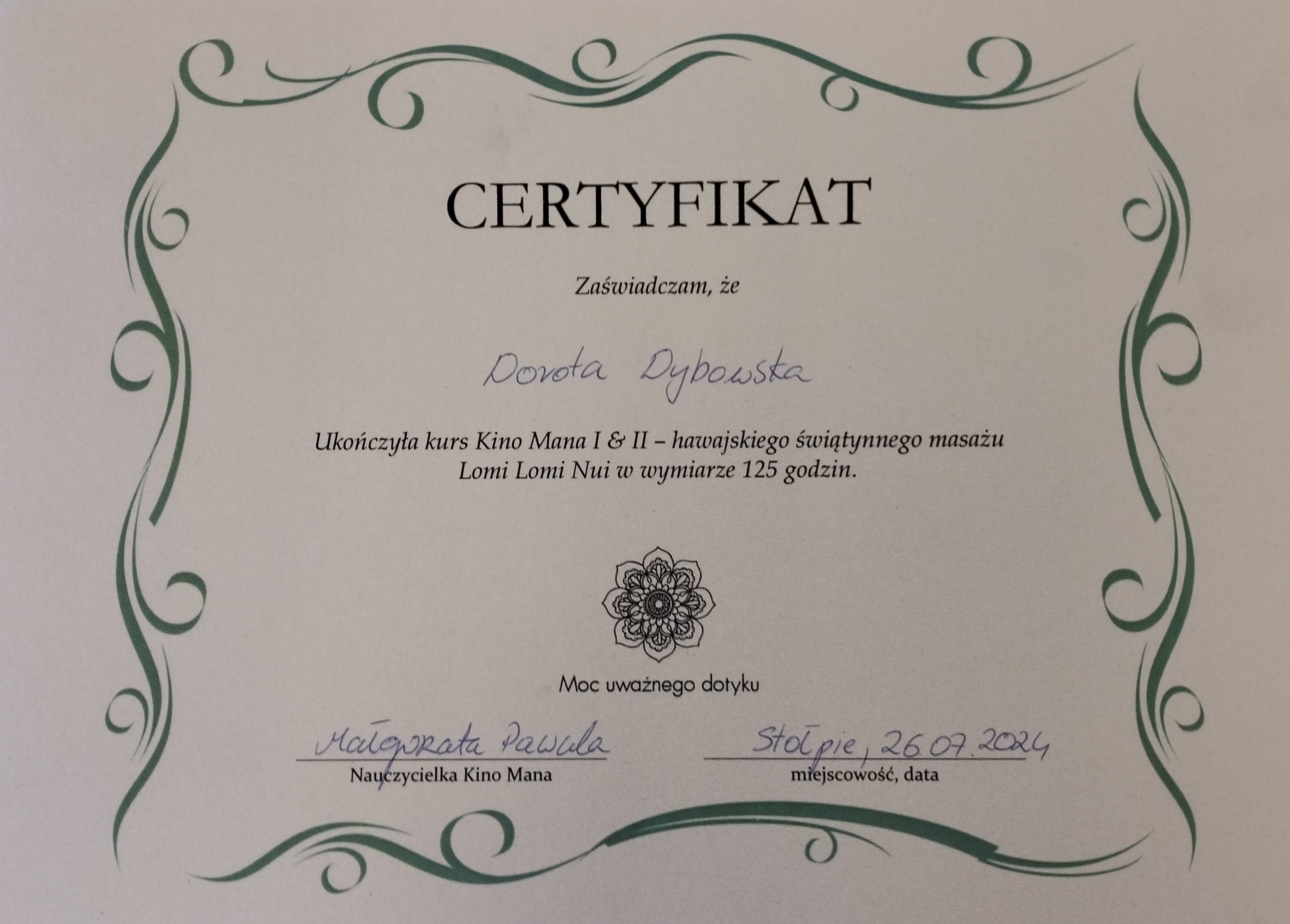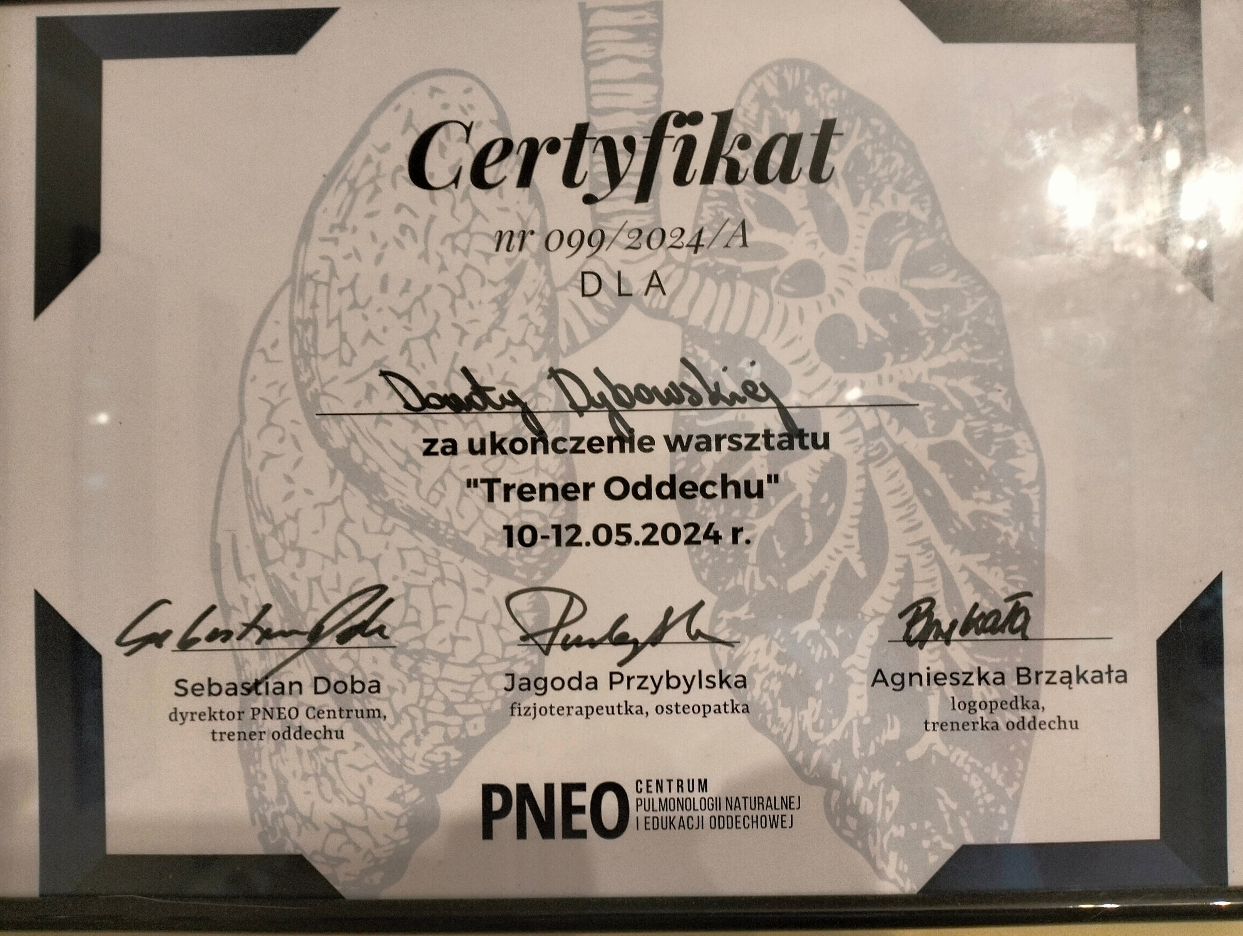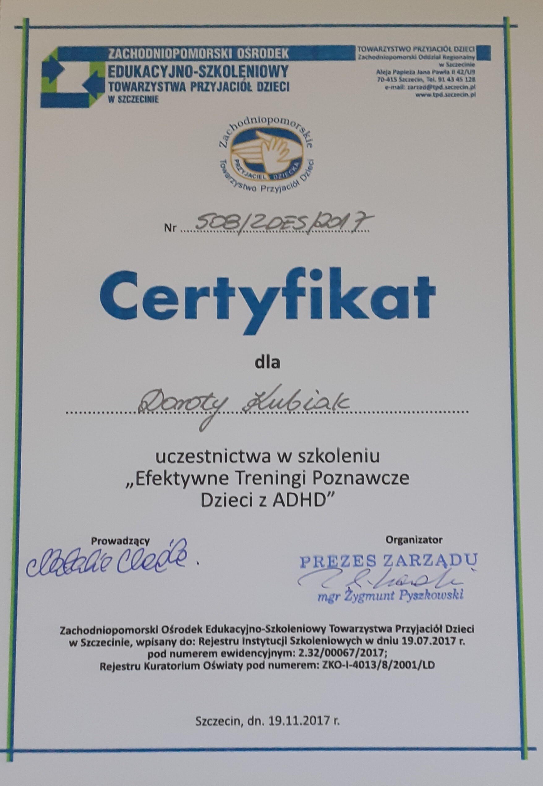 Starsze certyfikaty wystawione były na nazwisko małżeńskie: Dorota Kubiak. Obecnie na nazwisko rodowe: Dorota Dybowska.